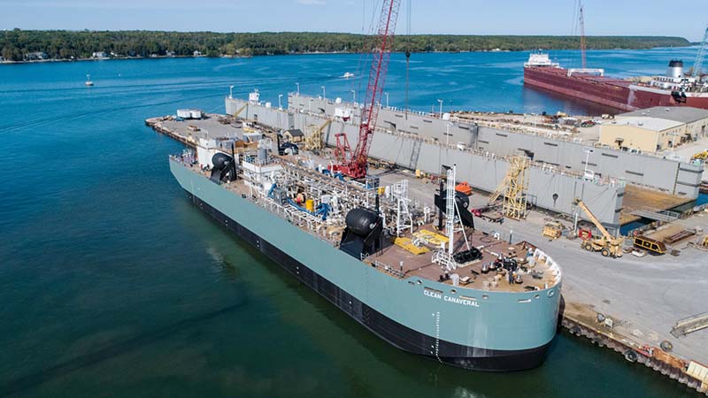 Thí dụ như việc chọn khí tự nhiên hóa lỏng làm nhiên liệu để chạy máy chính đã tiết kiệm được 35% giá thành và giảm đáng kể những loại khí độc hại phát ra môi trường. Dùng loại khí tự nhiên hóa lỏng này tốt hơn nhiều so với các loại dầu diezen thông thường trong vấn đề bảo vệ môi trường.