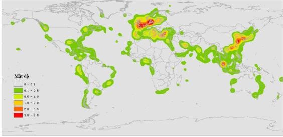 Hình 3: Phân bố tai nạn hàng hải 20 năm gần đây (Nguồn: Yang Zhang, et al., 2021)