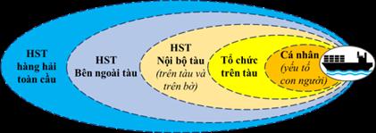 Trên thế giới, yếu tố con người quyết định gần như tất cả mọi mặt trong lĩnh vực khai thác hàng hải. Ngay cả khi trong các tình huống bất khả kháng như điều kiện thời tiết khắc nghiệt bất thường, thì con người cũng có ảnh hưởng rất lớn đến giảm thiệt hại có thể xảy ra. Cốt lõi yếu tố con người trong hệ sinh thái hàng hải toàn cầu được tác giả Carine Domiguez Péry mô tả trong Hình 5 [1].